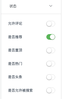 如下面中间图“状态”,如果需要把新闻在首页显示,打开“是否推荐”即可,首页多最显示2条推荐新闻,按ID降序(最新时间),