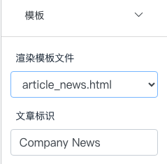 3、如下图,所有新闻都是固定填写内容,分类选择“News”,模板>渲染模板文件“article_news.html”,文章标识“Company News”。